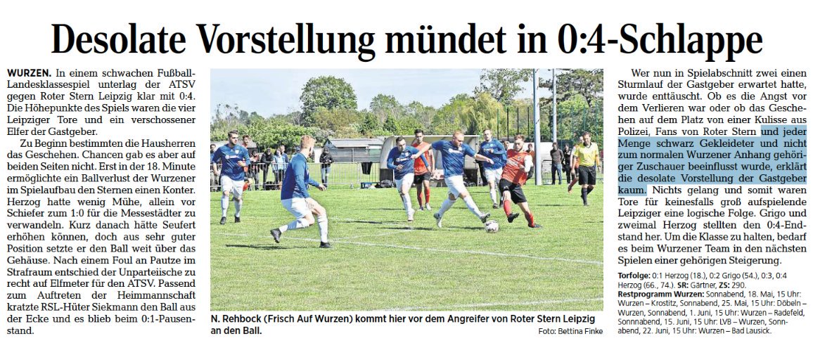 Die #LVZ spricht wieder mal nicht von Neonazis und natürlich waren die noch nie bei den Spielen von Wurzen, haben nur jahrelang selber im Verein gespielt🤦♀️ pic.twitter.com/ad1zmKJO1k